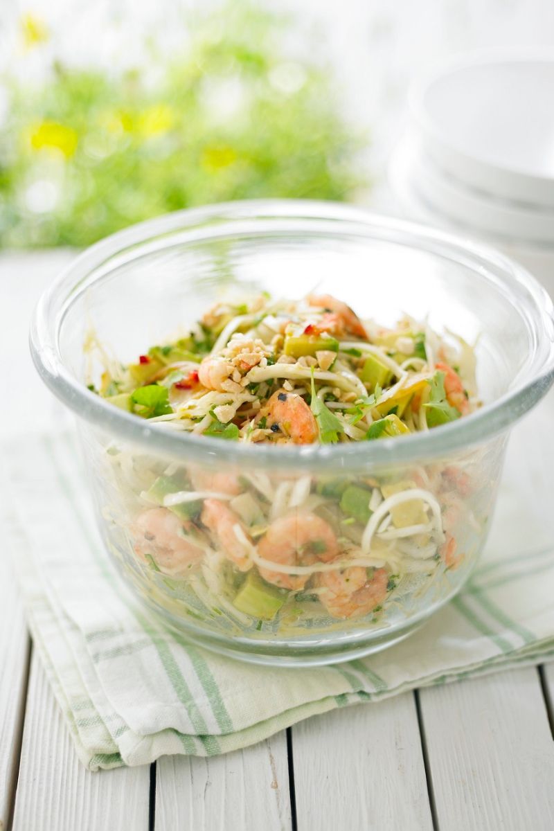 Packed with fresh flavours, this prawn, avocado, and cabbage salad is ideal for summer days.