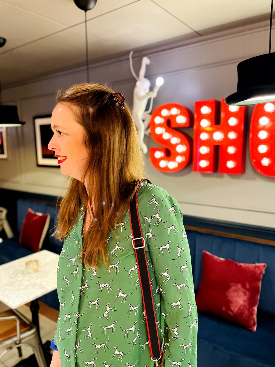 That dog print top is so fun on you what a great print and colour! It looks like an interesting place to stay as well, I’ve never stayed at a themed hotel before!