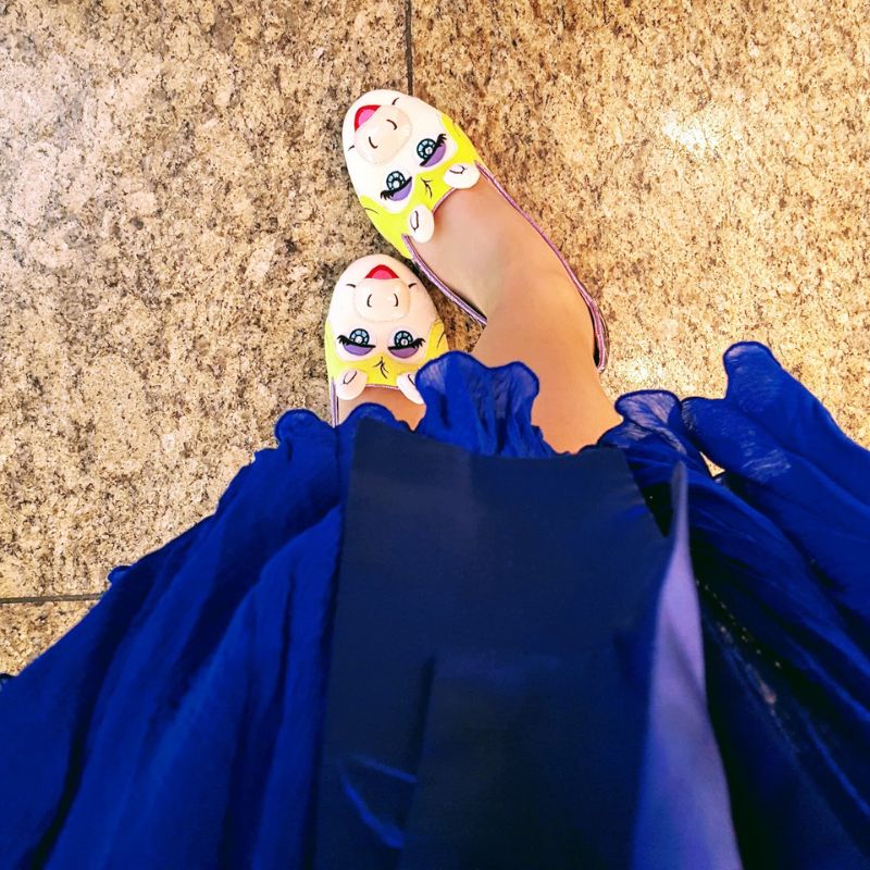 Then, with a flourish of excitement, I slipped into my quirky shoes, instantly infusing my look with a playful edge.